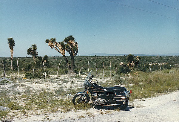 I went back north by a different route, Highway 40 to Reynosa. A good thing I did; about fifty miles from the border, out in the middle of a lot of nowhere, the 750 suddenly died on me. Just died, like that, sudden silence, no engine, no electrics, nothing. It was getting late; I had maybe an hour of daylight left at most.