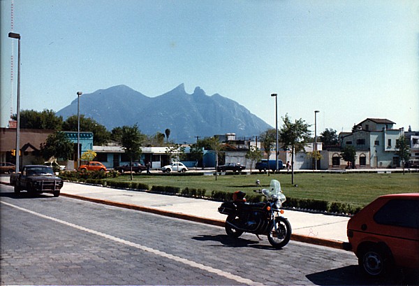 I'd already seen enough of Reynosa; I went up the river instead and crossed at Roma. On the Mexican side a couple of smartly-uniformed young guys had to search for the appropriate book in which to log my entry; it had been, they said apologetically, a long time since anyone had come across on a moto. Legal at last, I turned down the highway toward Monterrey. The highway was in excellent condition, which I figured meant it didn't get a lot of traffic and therefore wouldn't be very heavily patrolled; and I didn't see a cop the whole way.