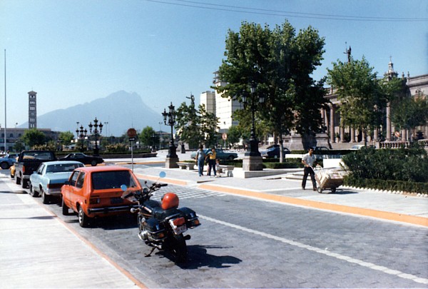 Monterrey, as any guidebook or any Mexican will tell you, is a very modern city; in fact many Old Mexico Hands assert disdainfully that it isn't really Mexico. Maybe not, but it sure as hell isn't Illinois, either. The locals do tend to affect a hustling go-for-it style, which probably annoys other Mexicans, and it shows in the traffic on the main thoroughfares; but these are easily avoided. Downtown I found it rather peaceful.