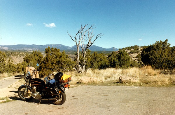 One of the great things about being a writer is that it gives you a bulletproof excuse for doing all sorts of fun things. Case in point: in the early spring of 1986 I needed to do some on-the-ground research for a novel I was working on, specifically the parts set in what is now New Mexico. So I loaded up the 750 and took off, just like that. Off screwing around again? Hell, no, I was working!