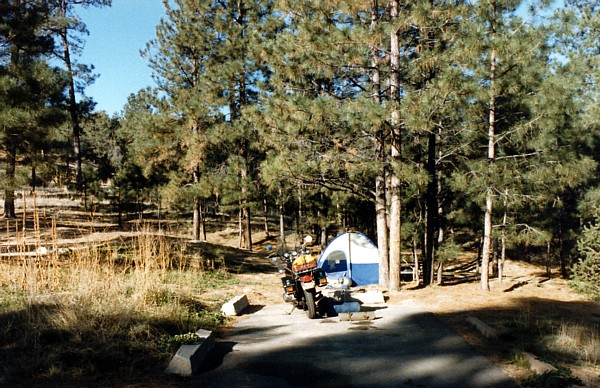 There was an excellent campground up above Frijoles Canyon, at a mere 7000 feet or thereabouts. Visitors to these parts are warned about the effects of high altitude, but it's never bothered me; in fact I thrive on it. I thought it might get pretty cold that night but it wasn't bad at all.