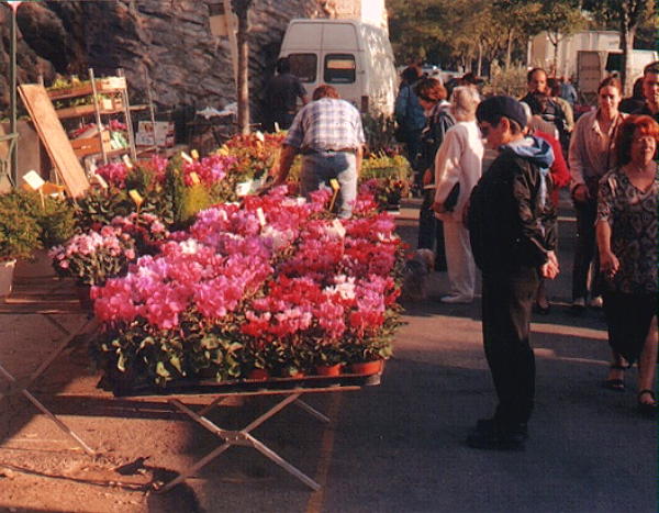 We found a great room right away, with a balcony overlooking a little square or rather trapezoid; there were even flowering vines to beautify the view and fill the room with scent and muck up my sinuses. The price was remarkably low, too; Arles turned out to be quite a reasonable town, especially for one that gets so much tourist traffic.