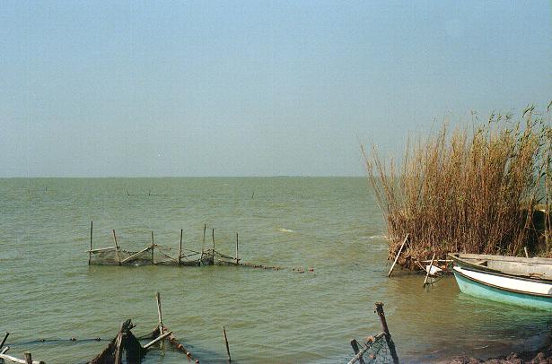 In the middle of the Camargue, dividing it almost in two, is the great shallow windswept Etang de Vaccarès. This is the most heavily protected part of the Camargue, a national wildlife reserve; all the same, you can find a few fishing camps like this along the northern shore. (Legal or not, I couldn't say.)
