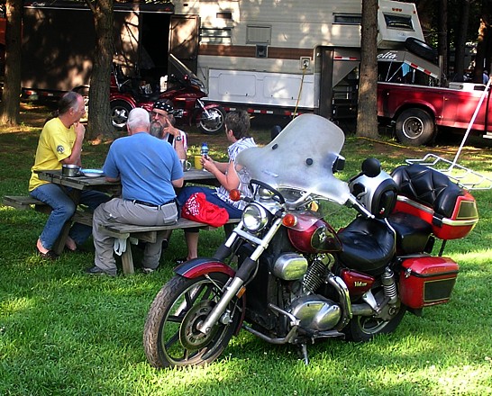 You see all sorts of bikes at these events; the IBMC is by no means a single-make-oriented outfit. On one side of my campsite was parked a Russian-made Ural with sidecar -