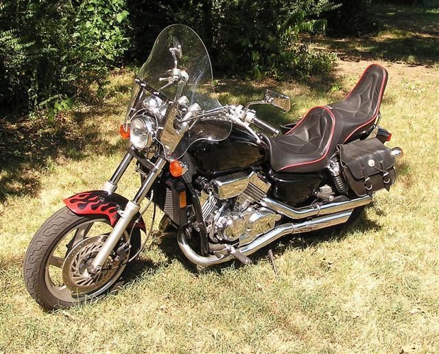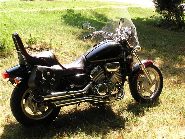 A lot of people fell in love with the Honda Magna when it came out in the middle 80s, along with its similar stablemate the Sabre; neither was quite like anything else on the road, and not just because they were so awesomely fast. A guy in Little Rock, whom I used to see around, had a Sabre, and showed it to me in some detail one day; and I lusted briefly, but there was no chance of my coming up with that kind of money, so I put the thought behind me.