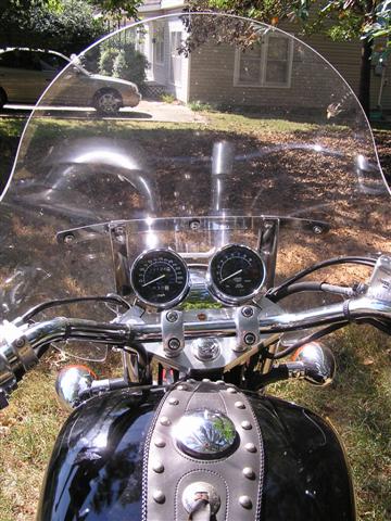 And not at all my usual style, not at all the kind of ride I'm used to. As the other pages show, I've always been a devotee of UJMs - Universal Japanese Motorcycles, vertical-transverse air-cooled fours or twins - or else the old two-strokes; a certain generic layout, either way, slab seat and upright riding position. Never had paid any real attention to the so-called cruisers, beyond an occasional demo ride at a rally or a dealership; certainly never considered I might want to own one.