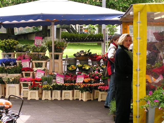 Saturday was bright and sunny, which was nice since it was market day. All along the main street off the Grotemarkt people were selling all sorts of foodstuffs: vegetables, fruits, fresh fish, sausages, cheese, pastries, as well as flowers and various merchandise. Even away from the market area, everybody seemed to be out enjoying themselves.