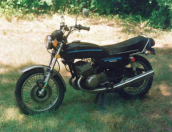 It was a pretty good one, too. The T500 was something of a wonder in its day: a piston-ported two-stroke twin, heftier and more solidly constructed than most Japanese two-strokes, and remarkably stable thanks in part to that long swingarm. I never really went anywhere with it, barring one trip out to western Oklahoma, but I rode it to a good many powwows and other events; and with better tires, I wouldn't have been afraid to take it out to either coast. It did vibrate a lot, but the seat was surprisingly comfortable, and it would run on garbage gas. I finally sold it, though. I didn't much want to, but I got considerably more than I'd put into it.