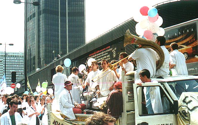 Of course they weren't doing this for my entertainment; as best I could understand, from the signs they waved and the sheets they handed out, they were protesting some cuts in funding for medical training (which explained the white coats, and the generally mature behavior of the marchers) and it sounded as if they had a legitimate bitch.
