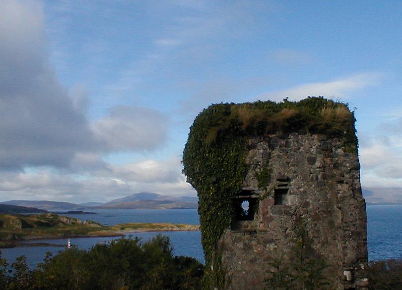 Unlike so many such sites, Dunollie isn't fixed up for ease of access; in fact it isn't fixed up at all, it's just there. No fence or gate, no guards or guides, no information center or gift shop, not even an admission charge. No interpretive signs, either; the only sign is one posted by the MacDougall family, who still own the property, pointing out that you enter at your own risk so don't sue them if a rock falls on your head. Or words to that effect.