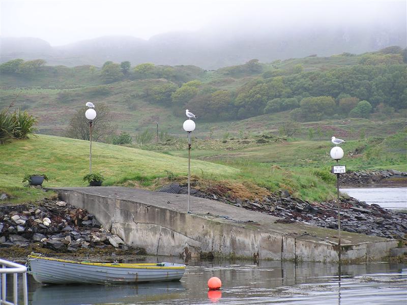 These islands used to be called the Slate Islands because they contain great layers of slate, which was once in great demand as roofing material. The industry died out a long time ago for various reasons, but the locals still work the slate for their own roofing needs. Kind of an interesting idea: your place needs a new roof, you go out and dig it up.