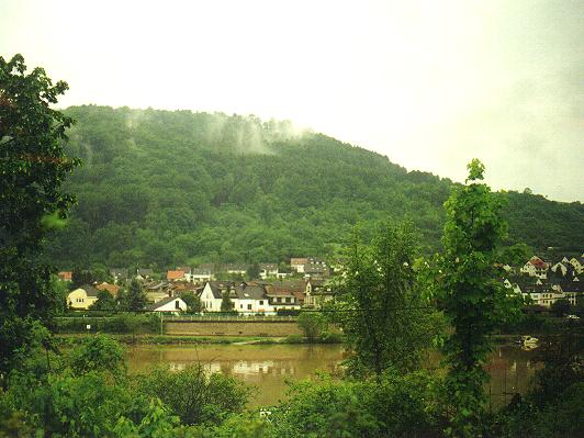 I didn't get to see all that much of Trier and its antiquities; by midday the rain was really bucketing down and even though I was reasonably dry under my plastic poncho (at least I'd had sense enough to bring it this time) it was stupid to be walking around when I couldn't really see anything. I ducked under a bus-stop shelter and while I was thinking things over a bus showed up with a sign: HAUPTBAHNHOF. Even I knew what that meant; I climbed aboard and rode back to the station.